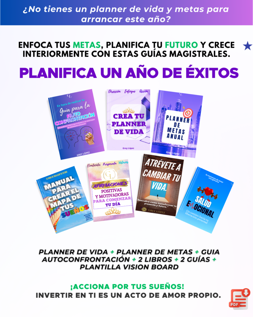 Hola, soy Grey López mentora e infoproductora, creadora de plantilla de PLAN DE VIDA y PLAN DE METAS, una herramienta que te ayuda a diseñar tu vida ideal y a alcanzar tus sueños. Mi pasión es enseñarte a usar esta plantilla para que puedas definir tus objetivos, planificar tus acciones, medir tus resultados y celebrar tus logros. He creado y compartido mi plantilla de vida con miles de personas que han transformado su vida gracias a este método simple y efectivo. Si quieres aprender a crear tu propia plantilla de vida y empezar a vivir con más propósito, claridad y felicidad, te invito a que la descargues y estoy segura de que te va a encantar y servir para tomar el control de tu vida.